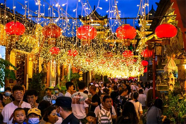 彝人古镇褪去白日的清雅