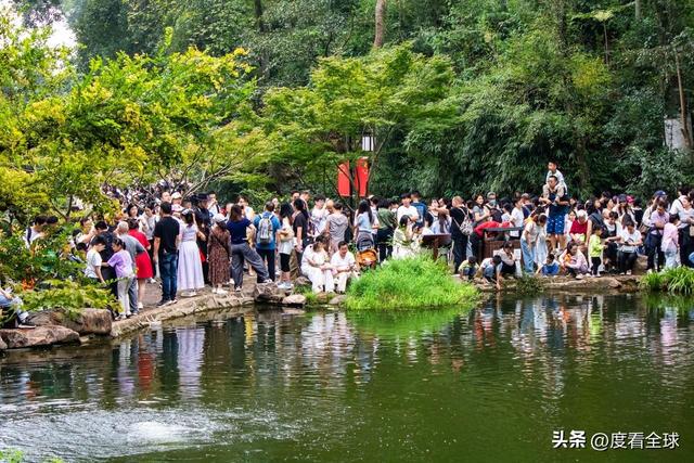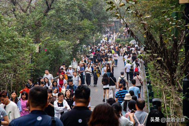 而到了 10 月 2 日 9 时至 10 月 3 日 9 时的 24 小时里,麓山景区的累计客流更是飙升至 9.85 万人次,在 10 月 2 日 12 时 30 分的客流峰值时段,实时在园人数突破 3 万人。