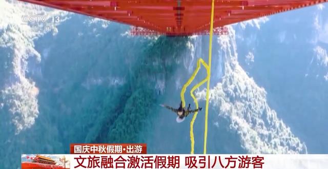 国庆中秋假期,湖南吉首的矮寨奇观旅游区人气火爆。355米高的矮寨大桥横跨德夯大峡谷,游客们既能体验蹦极、高空秋千等多个高空极限项目,又能走进德夯苗寨,在苗歌、苗鼓的旋律中沉浸式感受苗族风情。