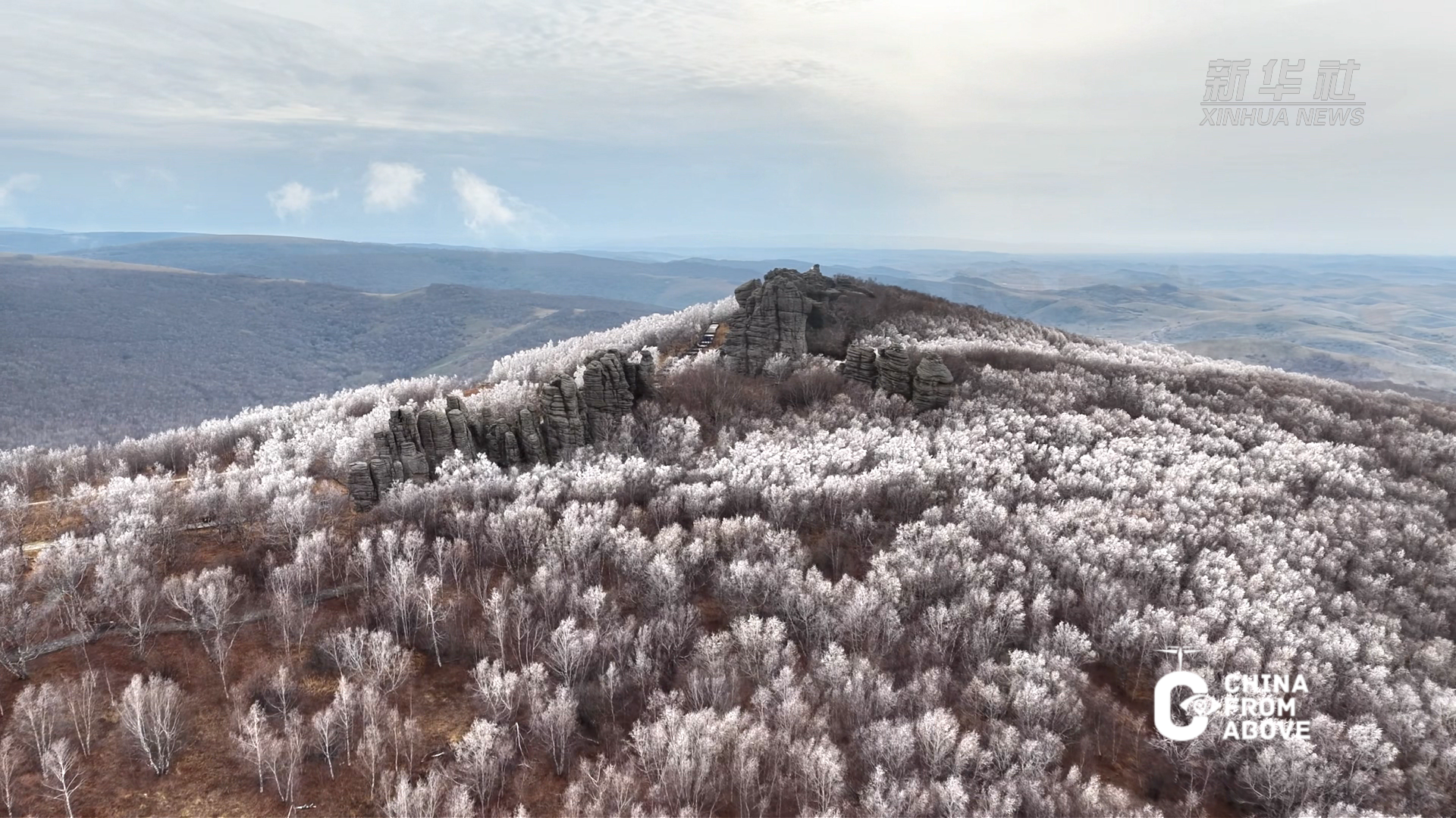 金秋十月,内蒙古自治区赤峰市克什克腾旗阿斯哈图石林迎来一场雾凇景观,为亿万年前的花岗岩群披上银装。嶙峋石峰耸出云海,琼枝玉树缀满岩隙,整片石林宛如镶满碎钻的银色秘境,在北疆的秋日里悄然铺展出一幅惊艳画卷。