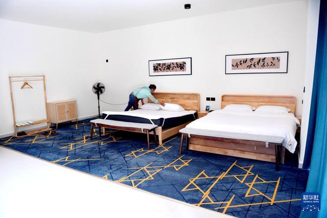 7月13日,工作人员在河北邢台内丘县侯家庄乡一处民宿整理床铺。 近年来,河北省邢台市内丘县依托优良的生态环境,打造风格多样的山居特色民宿,吸引当地村民在家门口就业,拓宽村民增收渠道,为乡村振兴注入新活力。 新华社记者 王晓 摄
