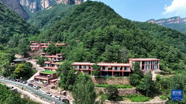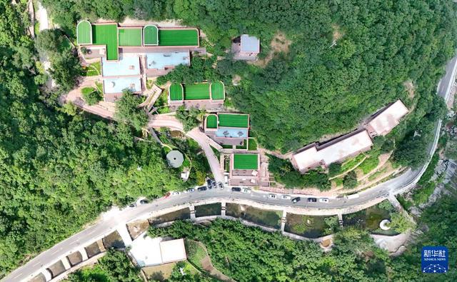 7月13日拍摄的河北邢台内丘县侯家庄乡一处民宿(无人机照片)。 近年来,河北省邢台市内丘县依托优良的生态环境,打造风格多样的山居特色民宿,吸引当地村民在家门口就业,拓宽村民增收渠道,为乡村振兴注入新活力。 新华社记者 王晓 摄