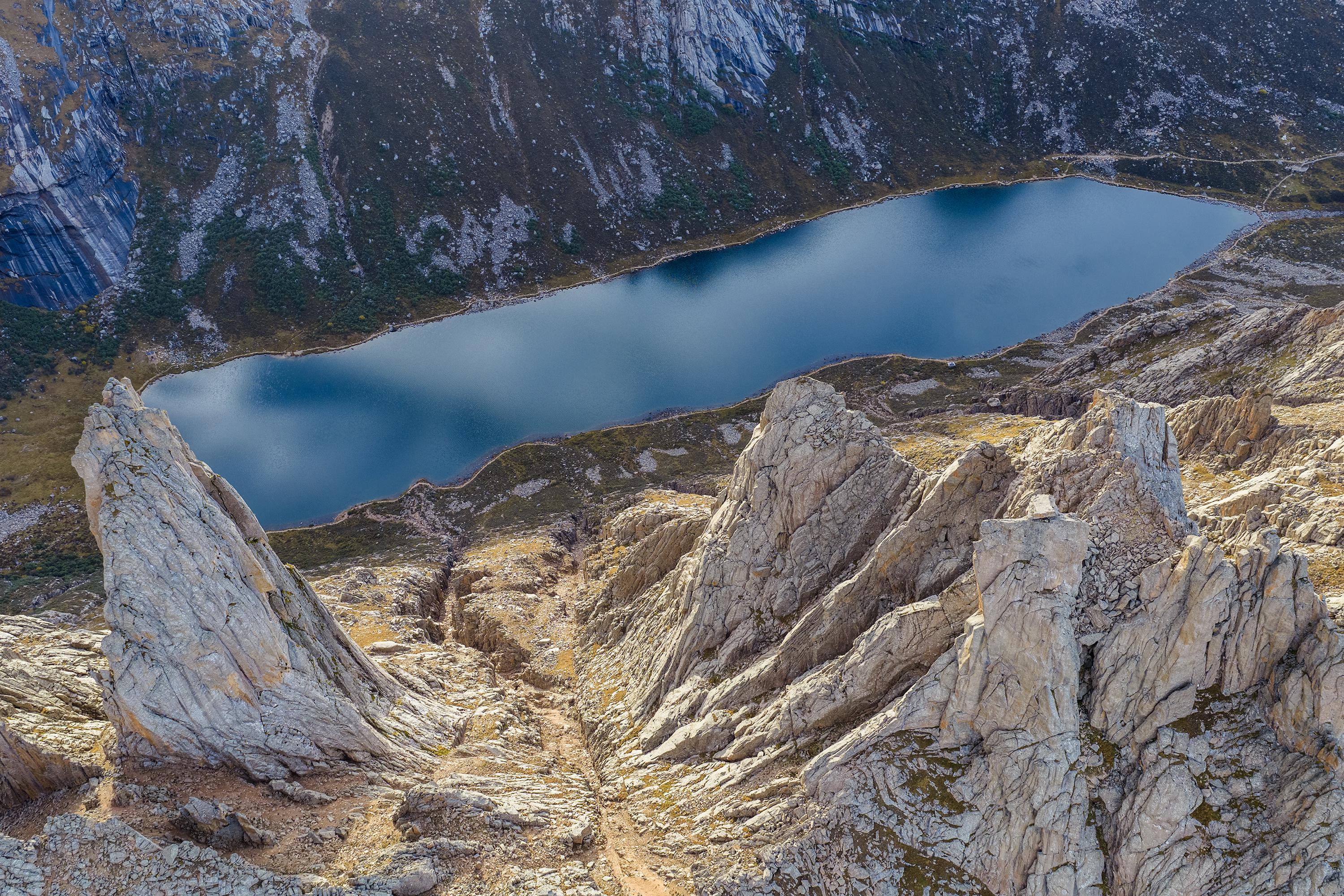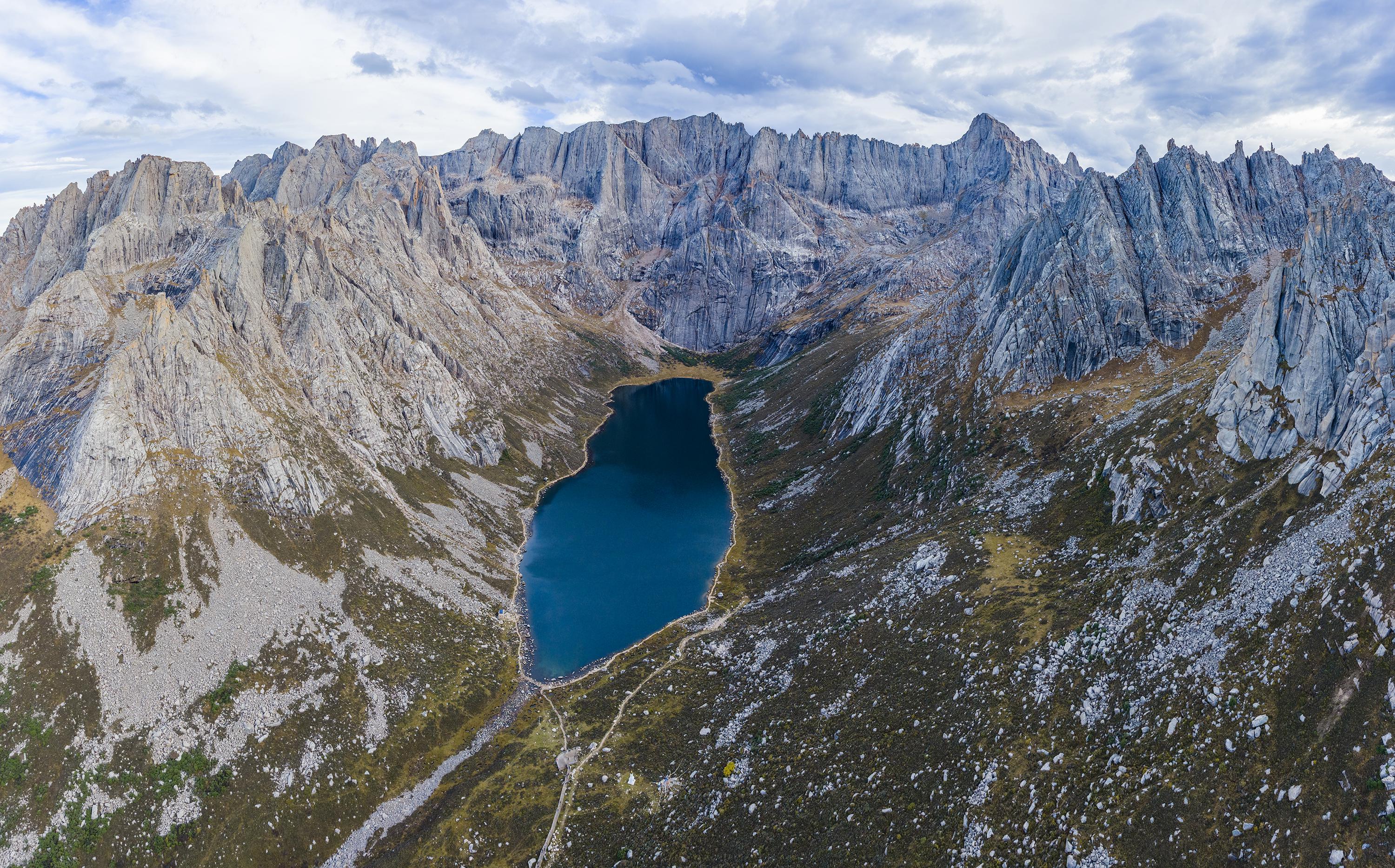 秋日的四川省阿坝藏族羌族自治州阿坝县的莲宝叶则景区,碧蓝的湖水与耸立的群山相映,景色如诗如画。