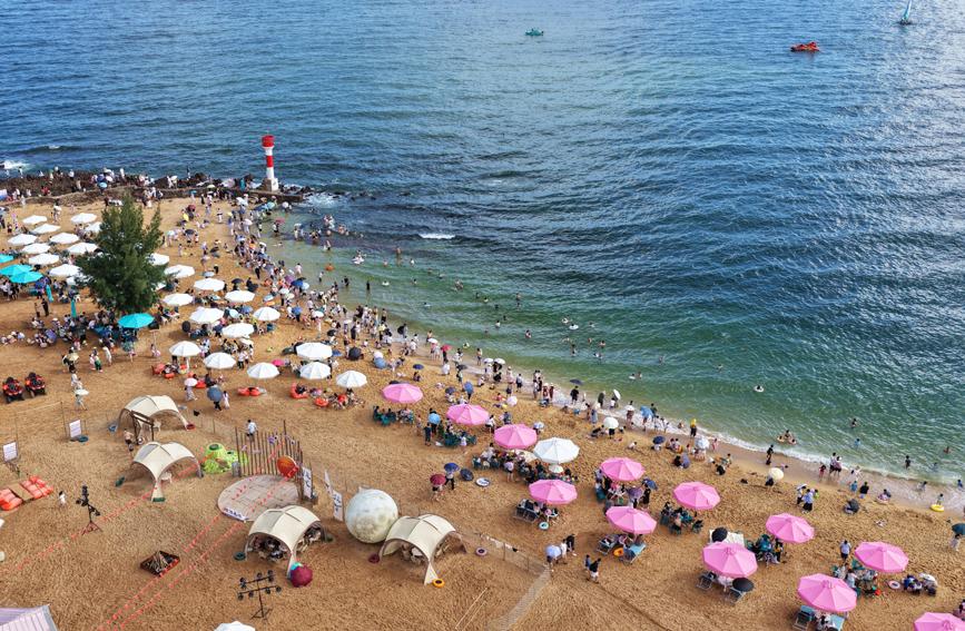 国庆中秋假期,广旅·白沙湾潮玩海岸节日氛围浓厚,吸引贵州、重庆等地游客前来体验滨海休闲。广旅海上运动公司供图