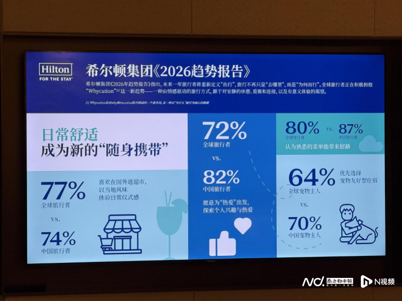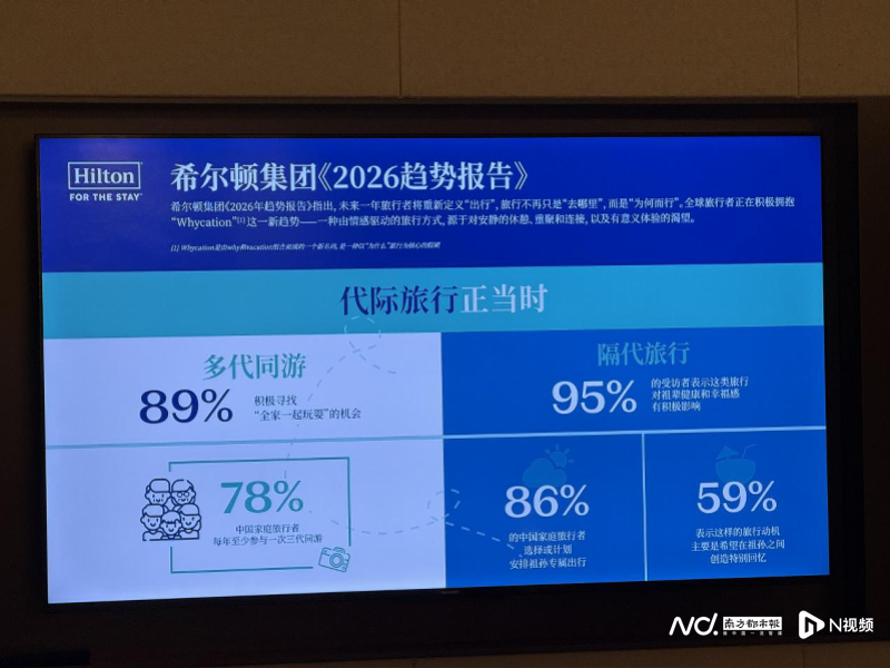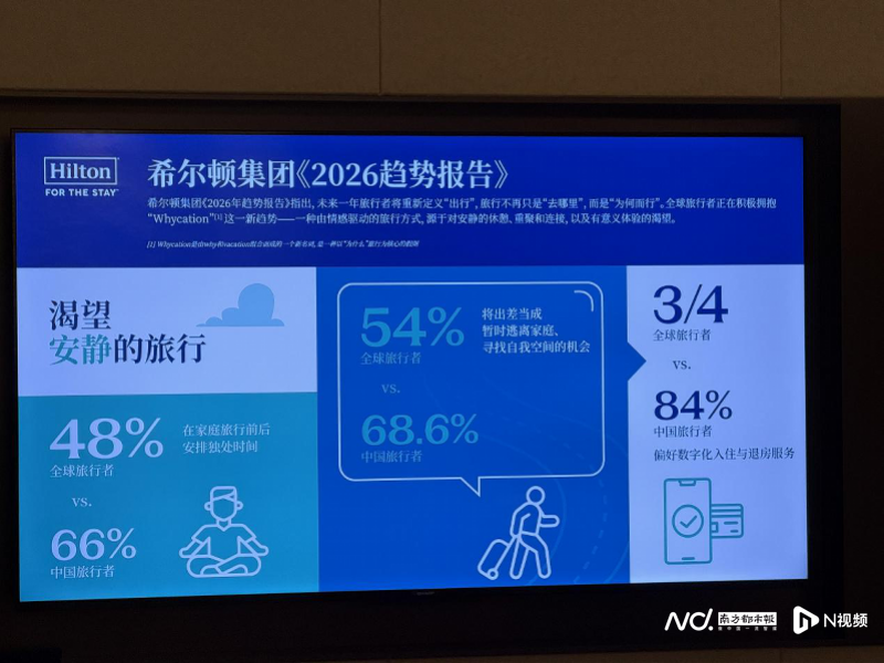 基于对全球14个国家逾14000名旅行者的调研、5000余名希尔顿团队成员的见解,以及1000名希尔顿荣誉客会会员的反馈,希尔顿集团正式发布《2026年趋势报告》。希尔顿方面调研发现,全球旅行者正在积极拥抱“Whycation”这一新趋势,即一种由情感驱动的旅行方式,源于对安静的休憩、重聚和连接,以及有意义体验的渴望。