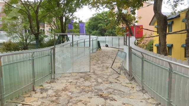10月9日上午,记者在现场看到,黄公东街处的架空栈道主体部分已近完工,工人们正在进行最后的护栏安装和路面清理工作。