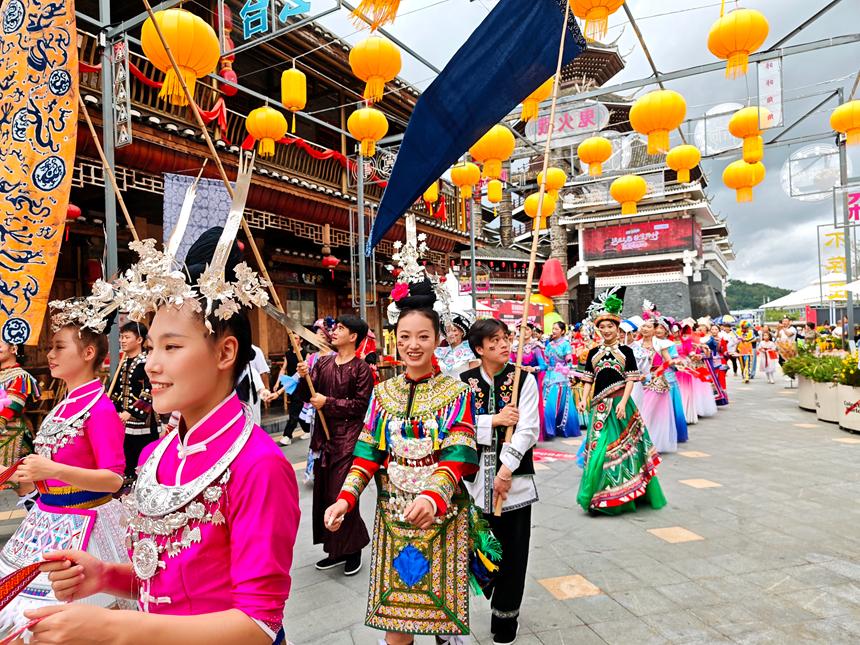 游客在多彩贵州城体验民族大巡游。贵旅集团供图