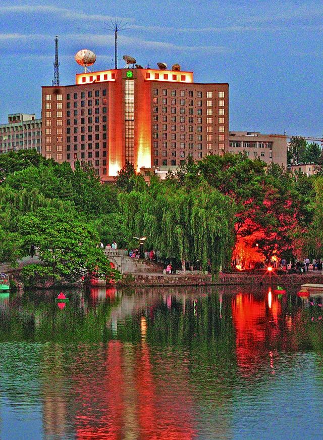 傍晚时分,翠湖宾馆与翠湖交相辉映。刘建明摄于2006年