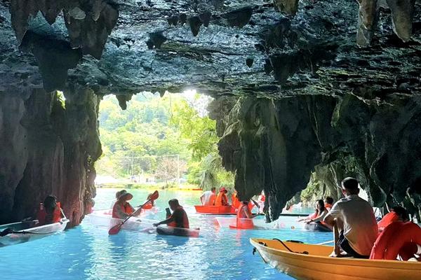 狼口泉景区以“秘境溶洞+碧波泛舟”为招牌,在假期实力圈粉。牙春柳摄