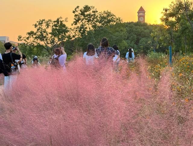 上海交通大学剑川路校区生态林里的粉黛乱子草也开得正盛,吸引了大学生和不少市民前往拍照打卡。