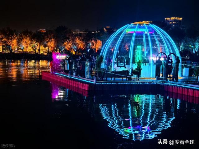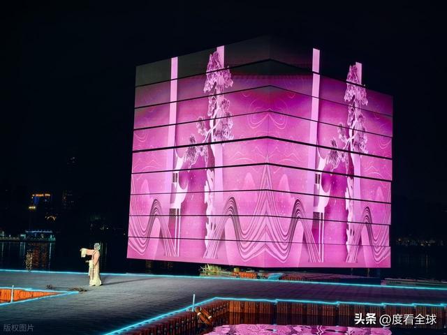 除了 “飞跃蓝湖” 这一王牌表演,朝阳公园内的水上光影漂浮舞台 “魔方” 同样让人眼前一亮。这个漂浮在湖面上的舞台,整体造型如同一个巨大的魔方,通过可调节的灯光模块和智能控制系统,能够不断变换出不同的色彩和图案。白天,它是湖面上一个简约而现代的艺术装置,与周围的自然景观和谐相融;夜晚,它则摇身一变,成为灯光表演的核心舞台,时而展现出绚丽多彩的几何图案,时而又呈现出北京的城市地标剪影,如故宫、天坛、鸟巢等,将北京的历史文化与现代都市风貌巧妙地结合在一起。每当有文艺表演在此上演时,灯光与演员的表演相互配合,音乐与光影交织,营造出一种沉浸式的观赏体验,让观众仿佛置身于舞台中央,与表演者近距离互动。