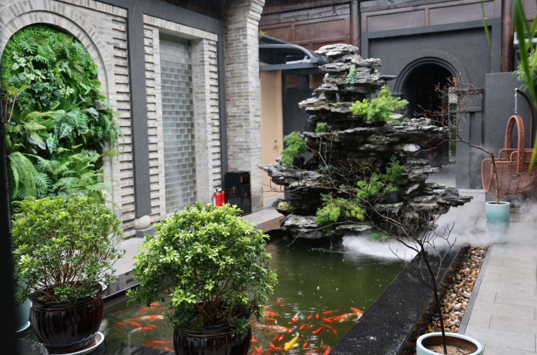 该酒店位于打磨北一巷,与泰山庙小吃街近在咫尺,对面就是网红打卡墙,方便游客拍照留念。酒店采用中式建筑风格,融合高山流水之景,营造出“偷得浮生半日闲”的意境。