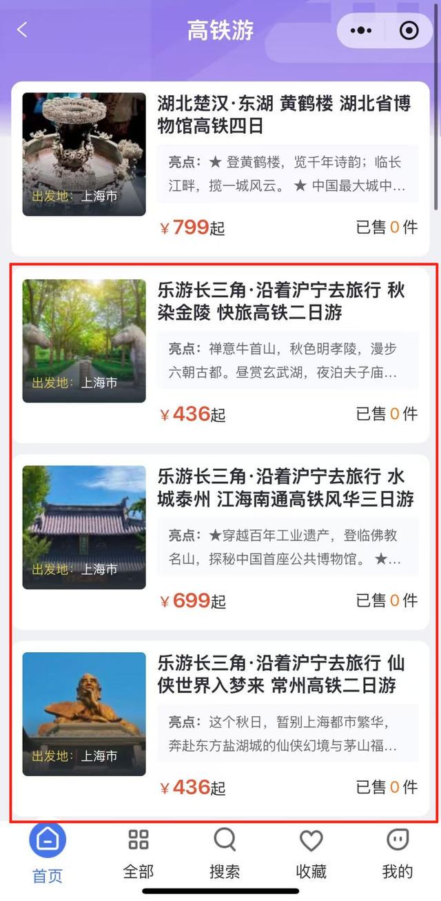 步骤四:选择“乐游长三角·沿着沪宁去旅行”的旅游产品,进入产品详情页。