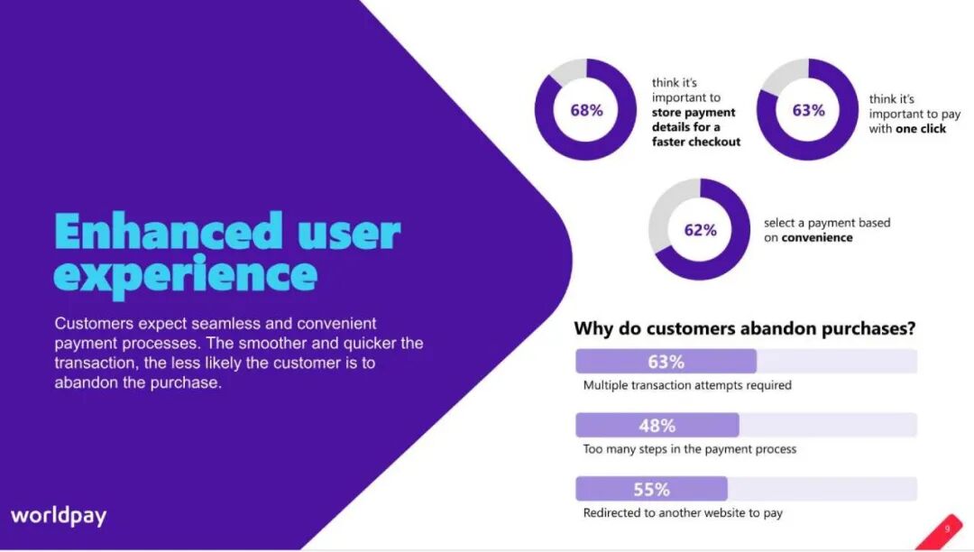 二是支付流程繁琐。GPR指出,支付步骤过多、需跳转至其他网站支付分别导致48%、55%的消费者弃购;另外,63%的消费者认为,一键支付对他们来说很重要。