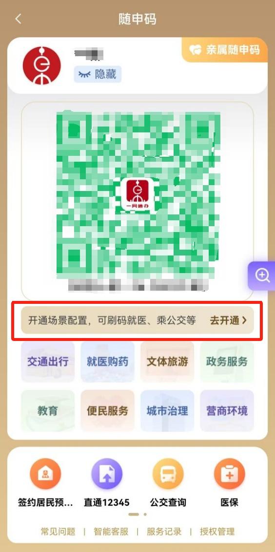 打开“随申办市民云”(app/微信小程序/支付宝小程序),首页点击「随申码」,开通交通场景配置,完成签约,即可使用。