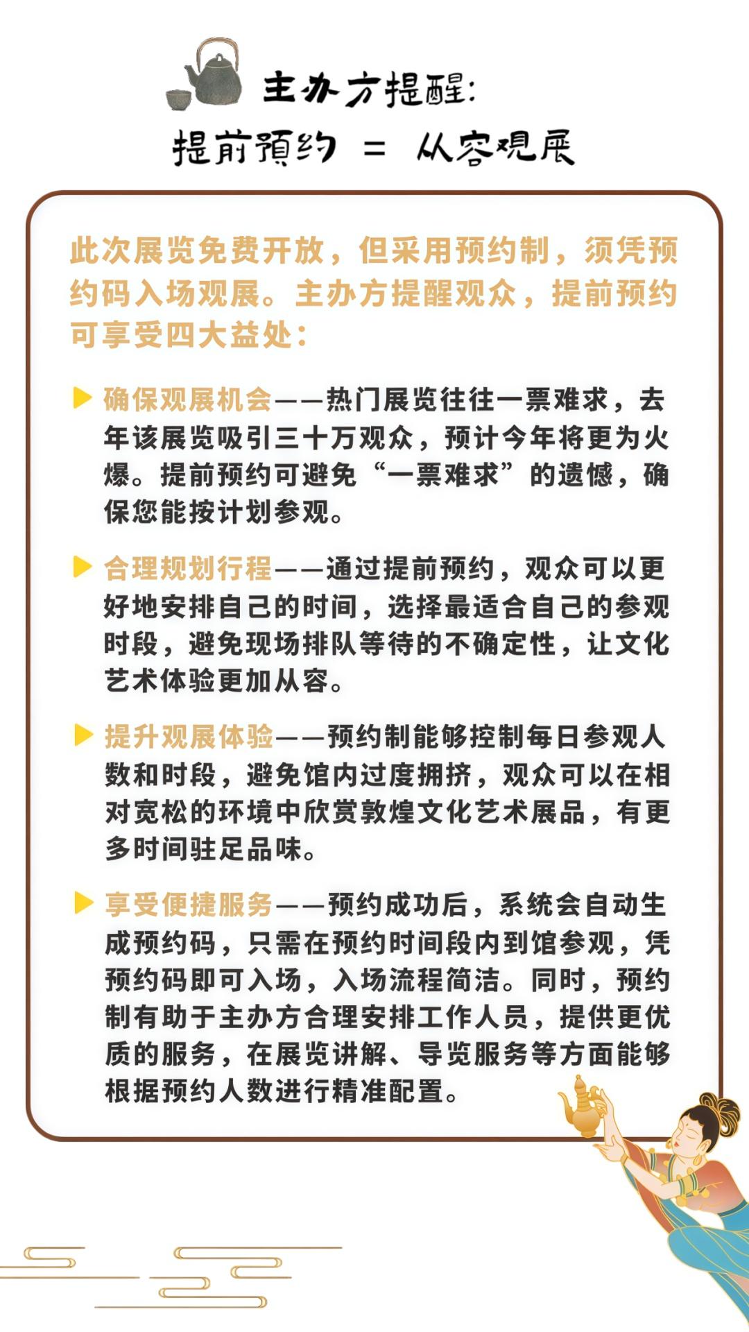 市文化旅游局介绍,2025年10月23日至2026年3月31日,“何以敦煌·念念回响”敦煌文化艺术公益展将在上海艺丰中心举办。此次展览对观众免费开放,采用预约制观展,预约系统已开启,预约通道一起往下看↓