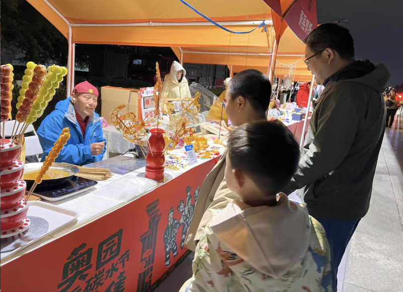 "踏月集"非遗慢闪专区为碳水节注入浓厚文化底蕴。专区特邀全国十几个省市的20位非遗传承人,带来龙泉青瓷、蔚县剪纸两项联合国人类非遗项目,以及景泰蓝、花丝镶嵌、雕漆、内画等11项国家级非遗项目。游客可亲手体验"铜与火的艺术"景泰蓝制作技艺,在京彩瓷釉上彩绘制中勾勒创意,在野王纻器填金技艺里感受传统工艺的精致。