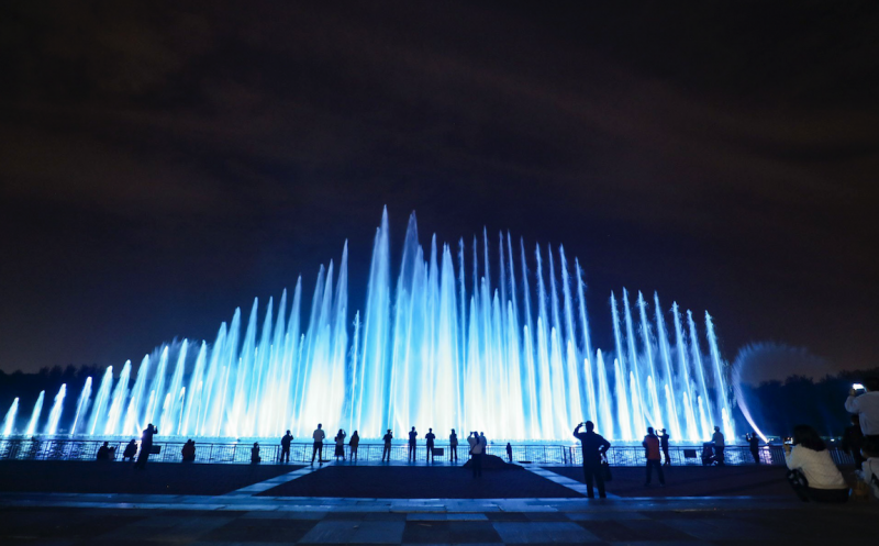 夜幕降临,奥林匹克森林公园的"山秀水秀塔秀"同步焕新,与"中轴时刻"光束联动,用光影构筑起生态与文化交织的艺术空间。奥森南园大草坪的奥海光影喷泉,以125米宽的水幕横跨湖面,最高80米的水柱直冲夜空,将水柱的灵动、灯光的绚烂与音乐的韵律深度融合,为观众带来一场声光水联动的沉浸式浪漫盛宴。露天剧场则化身"奥森音乐周末"秀场,在10月18-19、25-26日两个周末邀请多组风格多元的音乐人到场,主题音乐现场和美食市集混搭,将耳机里的旋律化为现场呐喊,解锁金秋10月的潮流体验。
