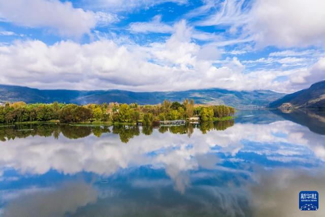 这是10月18日拍摄的云南省大理白族自治州洱源县茈碧湖(无人机照片)。