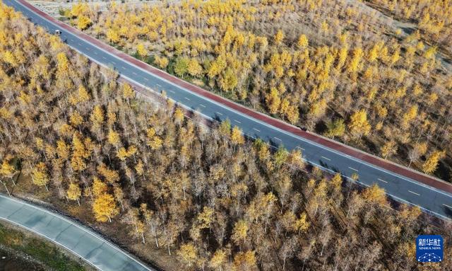 这是10月19日拍摄的甘肃省张掖市甘州区黑河林场胡杨林(无人机照片)。
