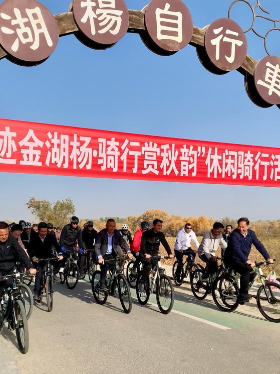 “骑行穿越胡杨林间,胡杨叶在秋风中簌簌作响,就像行走在金色长廊,这种感觉很舒服。”来自上海的游客施逸说。
