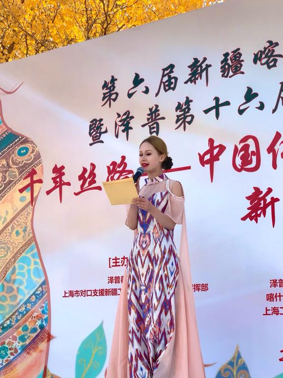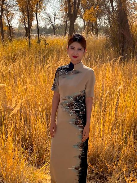 “胡杨林和旗袍秀相映成趣,这趟旅程让我印象深刻。”来自乌鲁木齐的游客陈爽现场订制了一件融入艾德莱斯元素的旗袍。