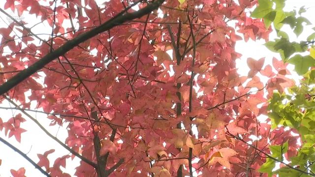 不同于北方枫叶的浓烈厚重,昆明植物园的枫香因高原温润的气候,红得更加鲜活透亮。