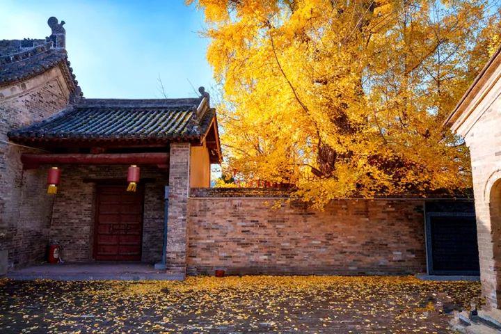 在被誉为“晋魏河山第一寺”的青莲寺内,大雄宝殿前有两棵古老的银杏树。据说这两棵银杏树是隋唐时期种植的,一雄一雌,历经千年风雨,依旧枝繁叶茂。那满目的金黄,让人在漫步间仿佛走进了诗的境界,忘却尘世的喧嚣。