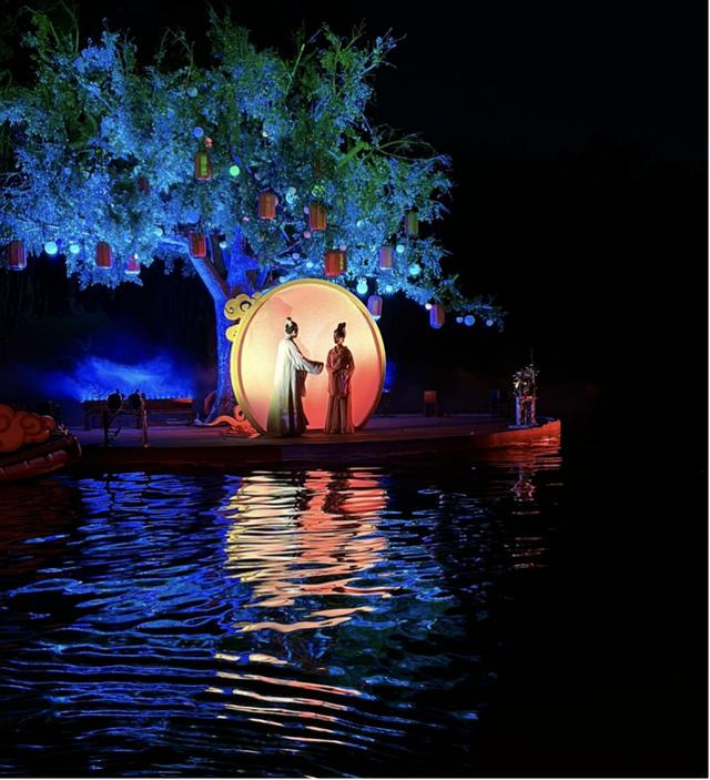 夜幕低垂,槐荫河畔。《槐荫船说》大型行浸式夜游演艺正上演着董永与七仙女的传说。但与传统演出不同,观众不再是坐在台下的看客,而是跟随演员穿梭于实景之间,成为故事的亲历者。