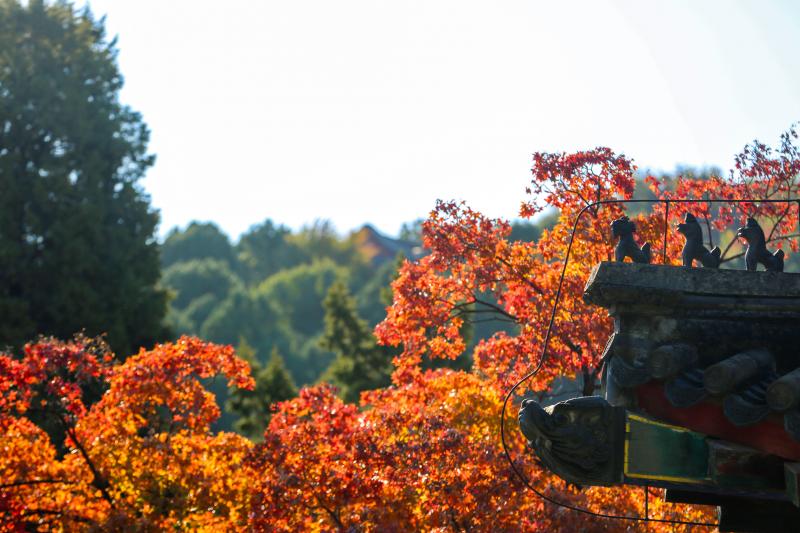 香山公园变色红叶目前主要集中在中下山区及景区核心区域,呈现出红、黄、橙点缀于青绿之间的斑斓画卷。山上部分区域因海拔和小气候影响,变色稍晚,仍以绿色为基调,这使得整体的色彩层次更为丰富立体。未来一周,随着温差持续,变色率将迅速攀升,秋色将愈发浓烈。