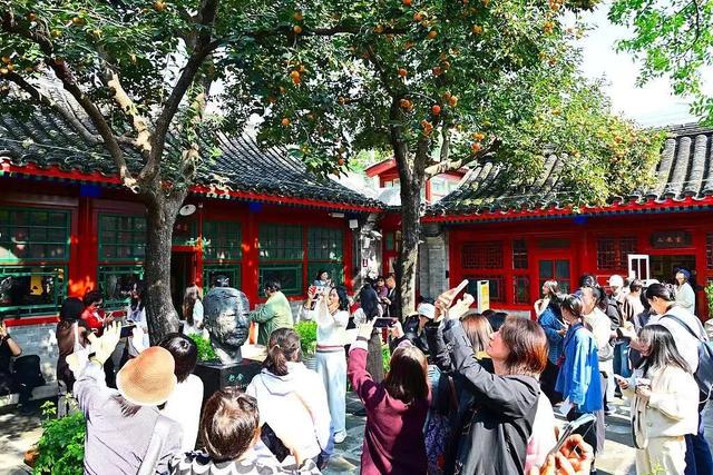 “我非常喜欢老舍的作品。来他的故居参观,既想亲眼看看他笔下的秋天,也希望通过满树橙红的柿子感受穿越时光的文学魅力。”观众付女士在老舍纪念馆参观,用手机记录美景,“门票免费,但需要蹲点预约,我是上好闹钟抢到的门票。”