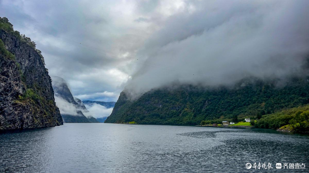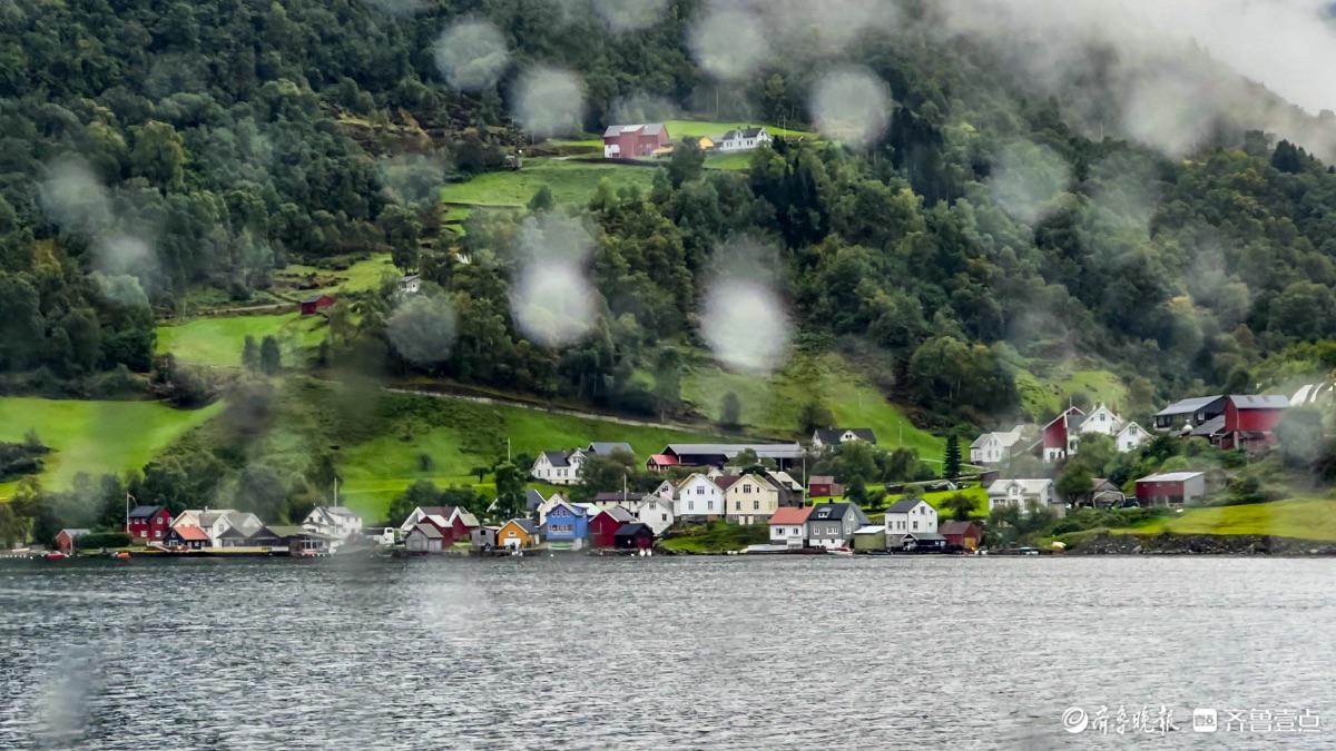 随着游轮深入峡湾腹地,两岸景色渐次铺展。几座色彩斑斓的小木屋错落分布在山坡,被葱郁草木紧紧环绕,屋顶袅袅升起的炊烟,为这份清寂的自然之美,添了几分生动的人间烟火气。不禁想象,住在这里的人,每日推窗便能拥揽世界级的美景,在山水环抱中过着平淡却满是诗意的日子。
