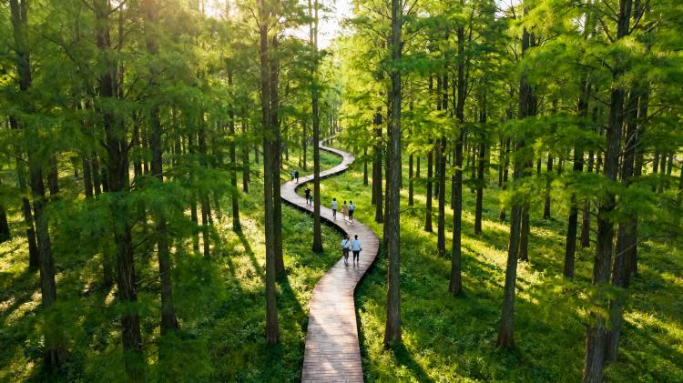触天而立的水杉和柳杉,分割了行入山中的车道,两旁的耸立在夏天几乎没有区别,据说要到秋天才真正能够体会“造化钟神秀”的奇景,一黄一绿的造物者行为,偏偏又在夏季错失。如果不是到山上来,还不清楚重庆的夏天会有这么凉爽的地方,提前准备的防暑药品、防晒霜、遮阳帽都在这里失去了功效。杉树对行人的呵护出于一种母爱般的自然,专程来避暑的人可以住进其间的木屋,也有扯吊床的,搭帐篷的,当然还有一些属于跟我们一样的游客,只在杉树林间走一走,已经洗去了身上大部分的潮热。