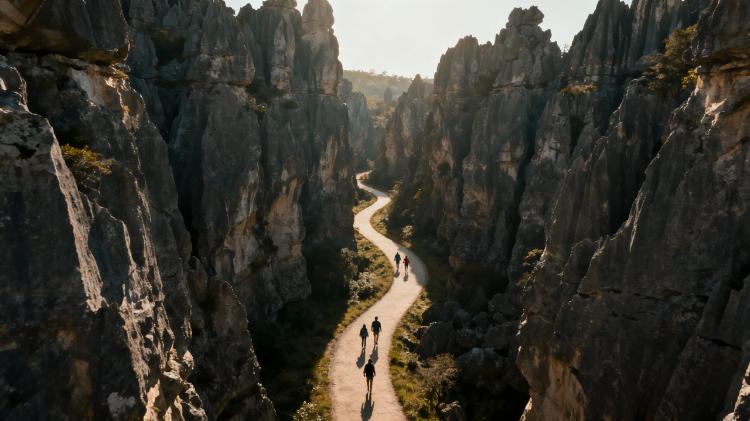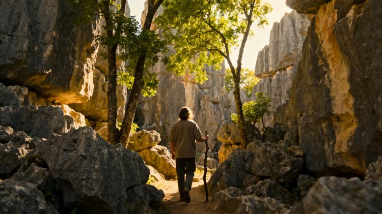 三月来的时候,还在下雨,山顶更甚,几乎没有好好倾听杉树林间的风,就走进了石林。这次还是在石林间行走,又与三月来时完全不同,我还想这地方又熟悉又陌生,天然石林的形成,本身带着鬼斧神工的妙趣,形成让人熟悉又陌生的石头迷宫,马头为先,接着是石猴,又插在其中的生出些野生猕猴桃,穿行石缝,百转千回,上下行走,真真是一点儿燥热都没有了。