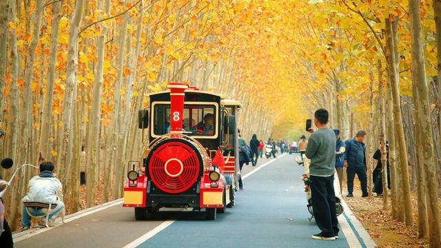 “黄河号”每天上午9点、下午2点准时发车,会根据客流随时增加发车班次。坐上车,窗外风景慢慢切换,从城市高楼,变成开阔郊野;层叠树林、远方若隐若现的黄河水…… 像一幅流动的秋日画卷在眼前展开,这一刻才懂:原来秋天的正确打开方式,这么自在治愈!