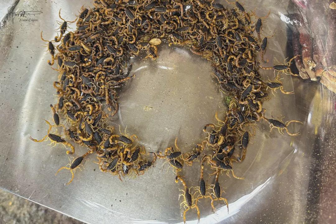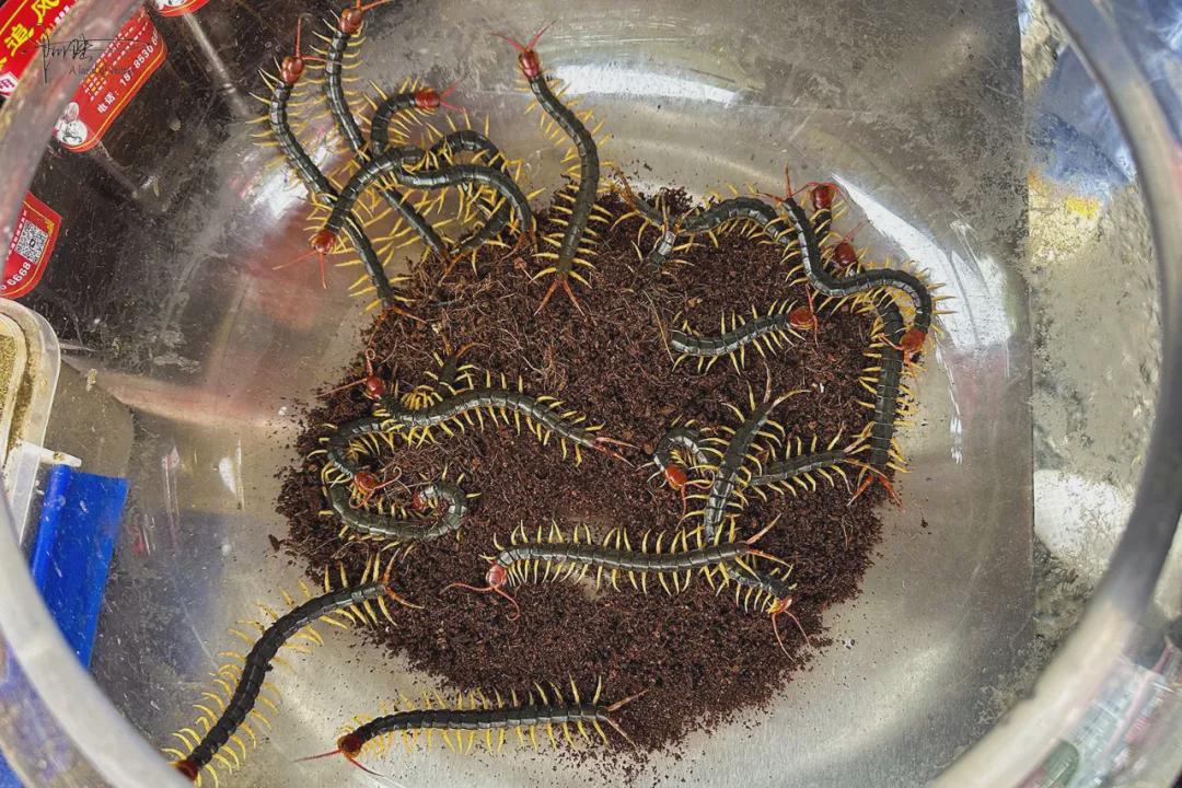 当然,这里的人气这么旺,也难免吸引来各种比较冷门的行当,比如眼前这专卖各种毒虫的摊位,虽然有些“活物”看着就能让人起鸡皮疙瘩,但在现场“寻医问药”的客户还真不少,着实让人不明觉厉。