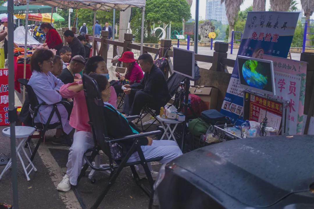 根据相关报道和我亲眼所见,这里的商贩以经营蔬菜、小吃为主,涵盖鹅肉粉、清真牛肉店、破酥包等众多本地特色美食。但让人惊讶的是,街边的生意竟然还包括修指甲、采耳和按摩,并且设备还相当先进,比如采耳,就有显示屏在放大直播整个过程,至于价格嘛,更是相当亲民。