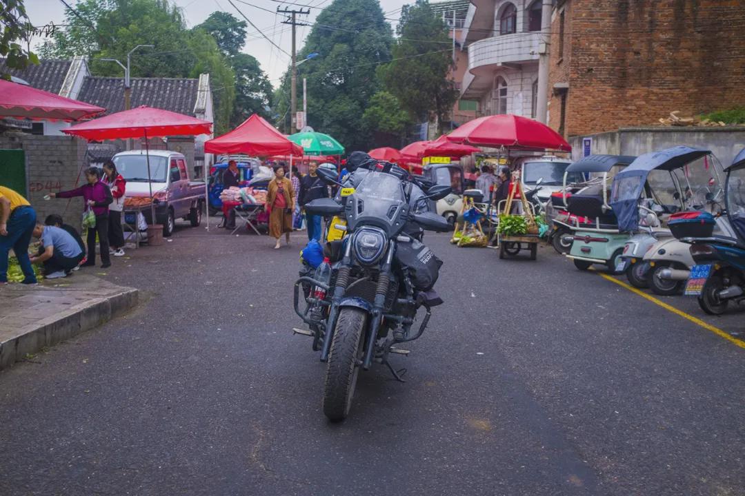 说实话,摩托车在这里骑行并非明智之举,奈何往里走十来米后,感觉情况不妙时再想回头已经来不及喽,硬着头皮跟随人流慢慢往前走,好不容易在公园的广场旁边看见有空位,便连忙靠了过去。