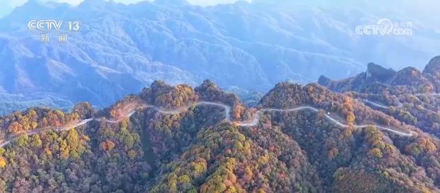 眼下,在四川广元旺苍县米仓山盐井河峡谷迎来一年最多彩的时节,4万余亩森林披上了五彩斑斓的衣裳,绵延数十里,如油画般铺展在群山之间,勾勒出一幅绚丽多彩的秋日画卷。