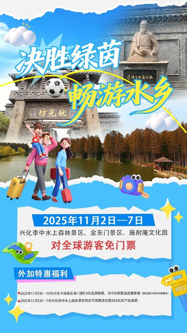 据了解,兴化文旅将送出“免门票”和“特惠福利”双重惊喜。2025年11月2日—7日,兴化李中水上森林景区、金东门景区、施耐庵文化园,将对全球游客免门票。2025年11月2日—10日,在兴化千垛景区游玩的游客,将享受单门票9.9元送游船票;39.9元联票送品蟹套餐(景区窗口同步价格售卖)的特惠福利。2025年11月2日—7日,在兴化李中水上森林景区游玩的游客,如购买竹筏票即送价值38.8元的农产品福袋。