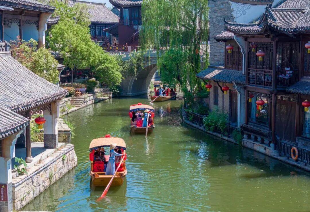 “舟行碧波上,人在画中游”的诗意,在此刻化为现实。乘一叶摇橹船,任春风吹面,听船歌袅袅,看两岸的花影与古建倒映在碧波之中。