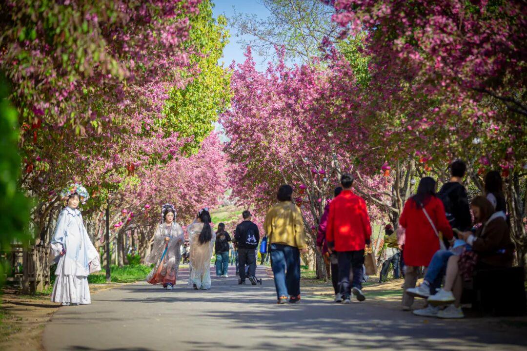 或许,在某个转角,您会遇见身着古装的游人。衣袂飘飘的身影倚着花枝,或是执扇漫步于石桥,为这幅春日的画卷添上了最灵动的笔触。不妨也放慢脚步,让自己成为风景的一部分,将这满城春色与诗意一同珍藏。