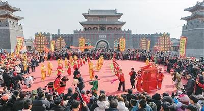 在山东临沂琅琊古城内举行的民间秧歌会。王 慧摄(人民视觉)