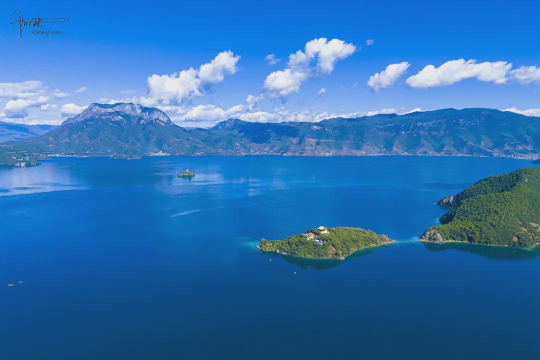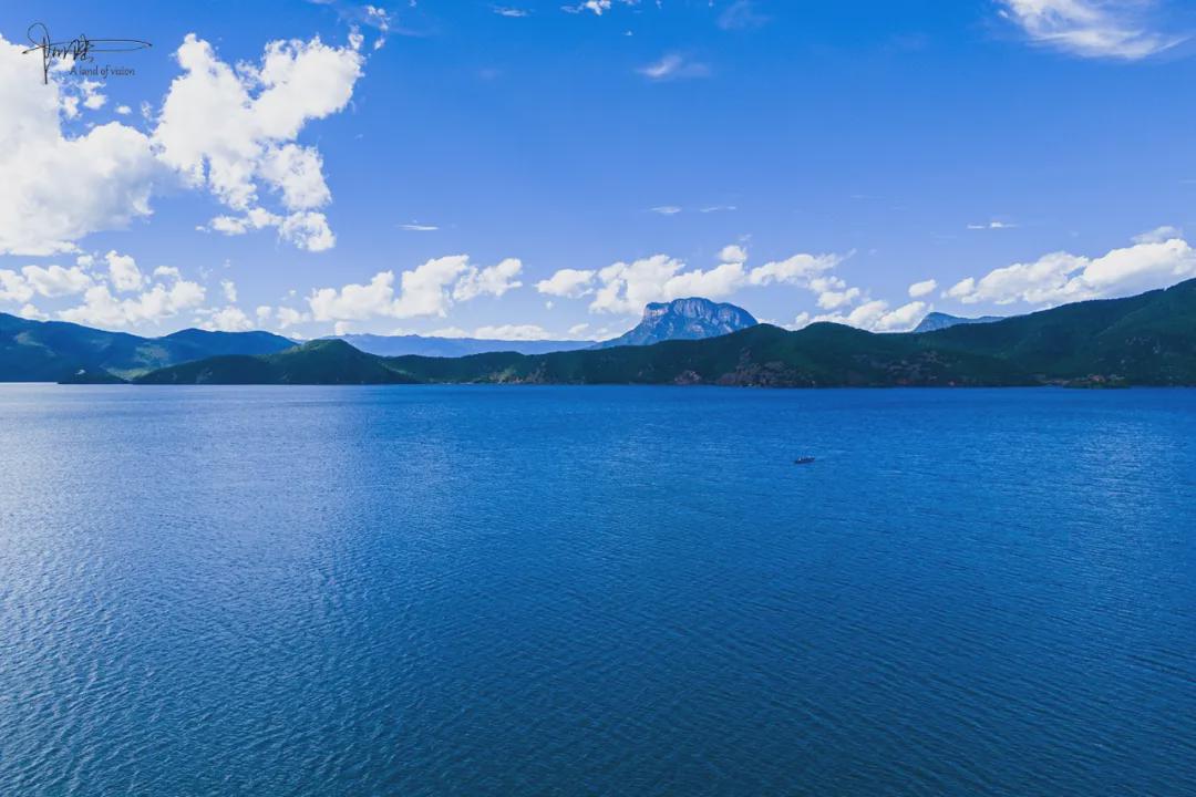 因为我住宿在泸沽湖草海旁边的村庄民宿里,所以初次到湖边打卡的时候,很快便被这座堪称伟岸的“格姆女神山”背景强势吸引了注意:蔚蓝的天空,湛蓝的湖水,偶尔掠过的飞鸟,以及那些缓缓游弋其中的猪槽船,在这座海拔3770米(也有人说是3754.7米)的神山的“呵护”下,壮观又不失唯美,尽现泸沽湖别样的诗意风情,当即的确由衷地发声感叹:“真是太美了!”