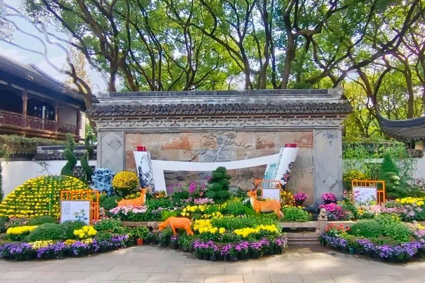 上海醉白池以“菊光流影·诗径行秋”为设计内核,推出第五十一届菊花展,精心打造沉浸式的赏菊空间。