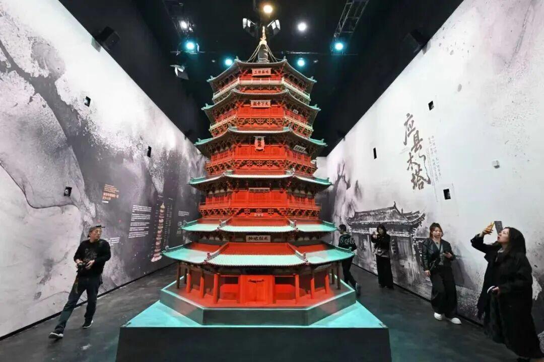 打造的应县木塔模型。新华网 发 (韦亮 摄)