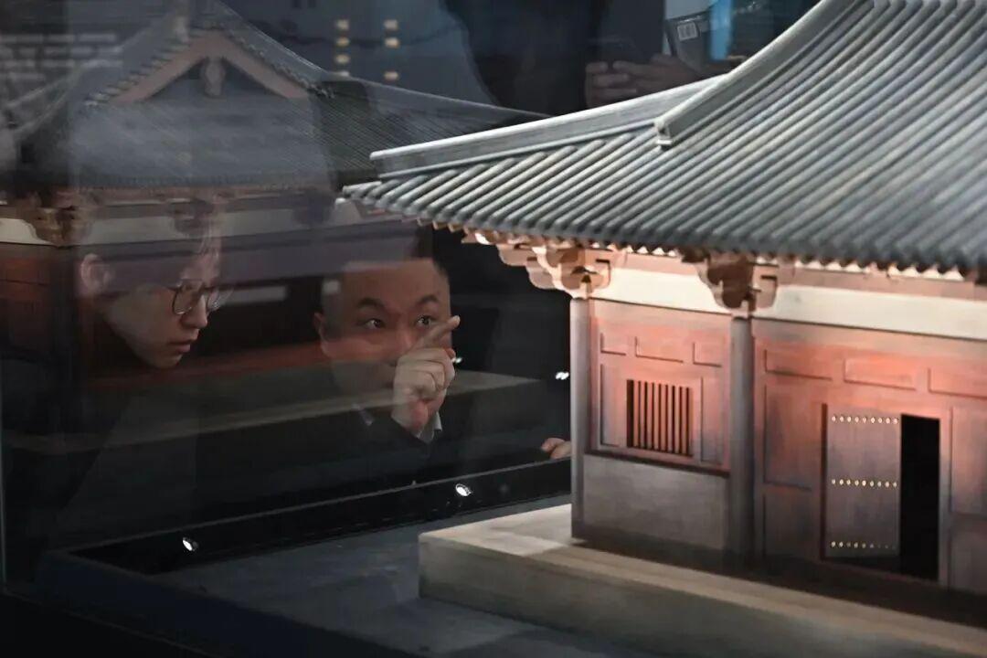 ——古建数字艺术展中的古建模型吸引了参观者的注意。