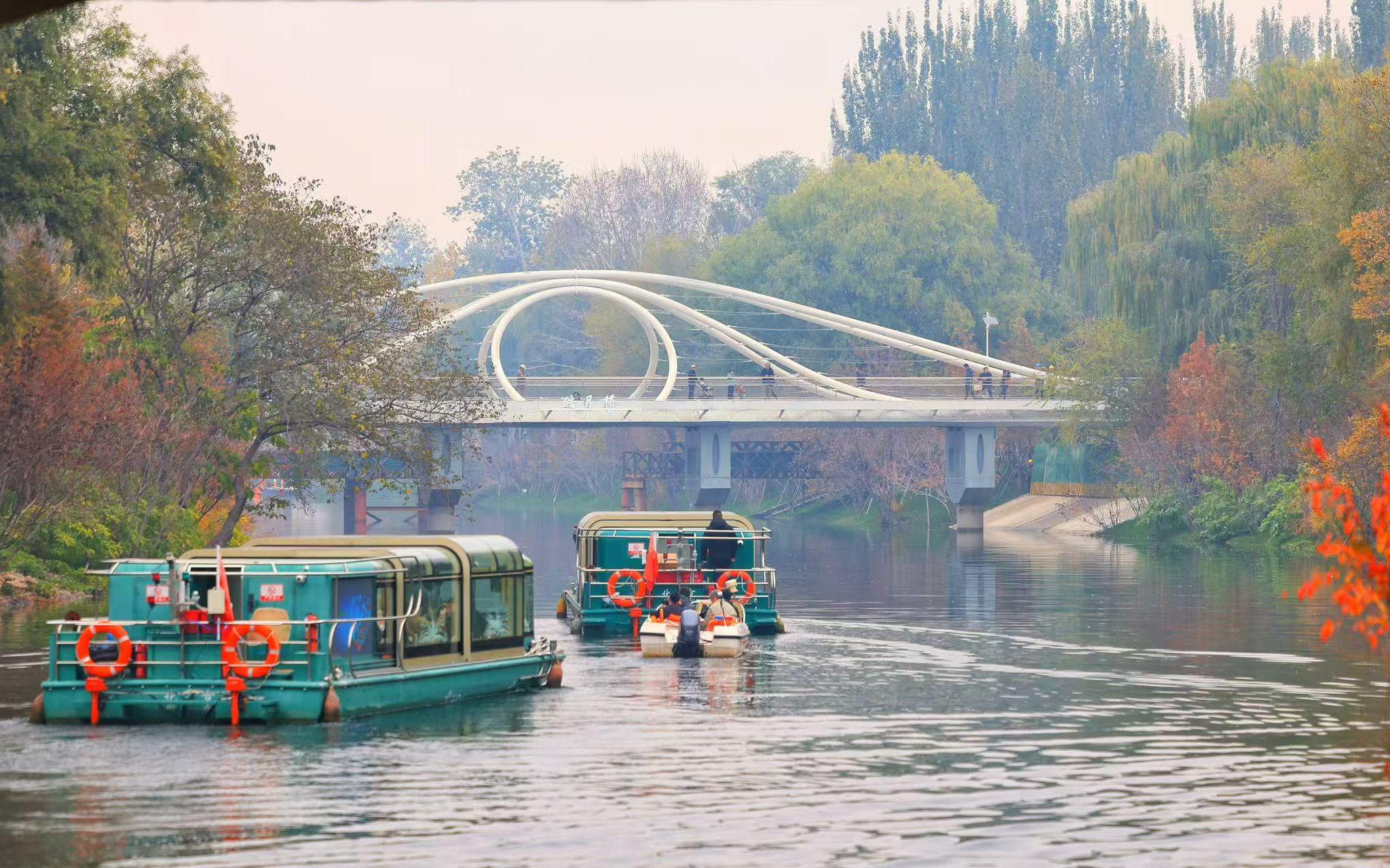 除了乘船游览,坝河两岸21公里滨水慢行系统已实现贯通,形成“步道+骑行道”的复合型交通网络,13座跨河桥完成桥下连通,市民、游客漫步滨水空间更加便捷。