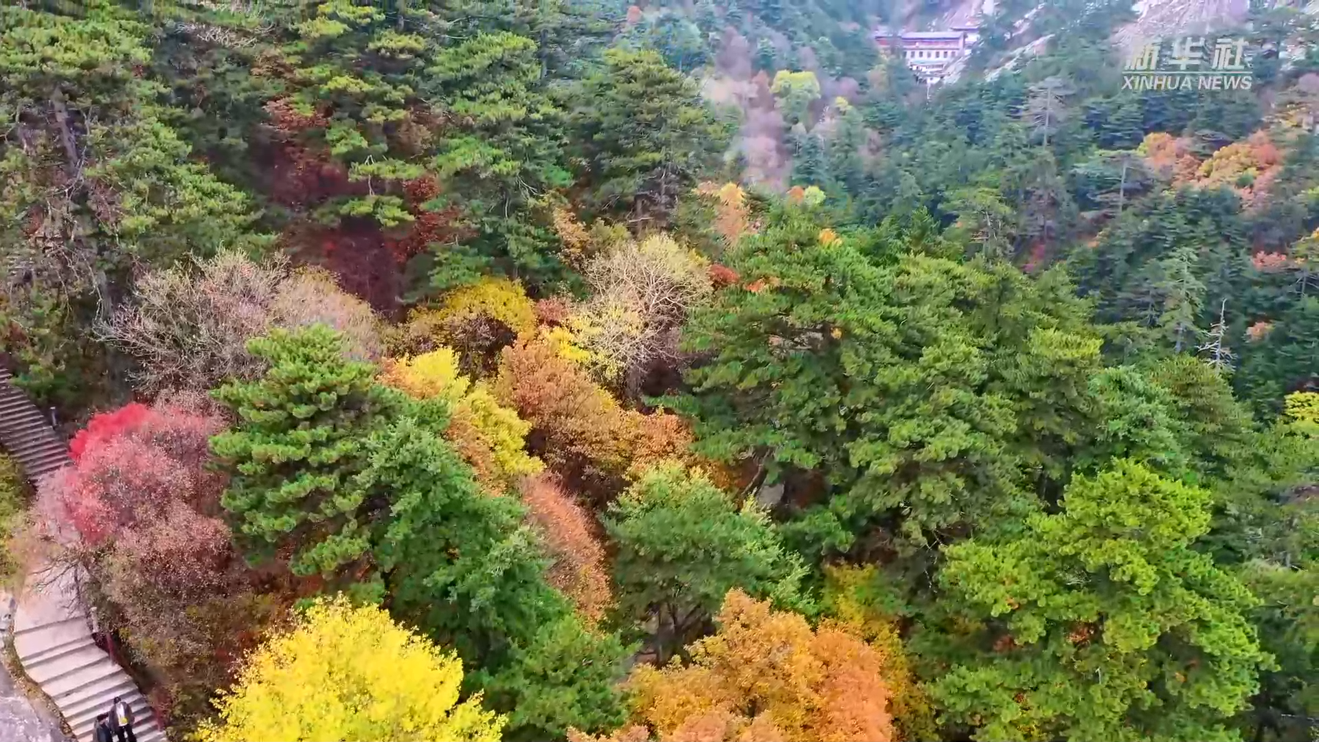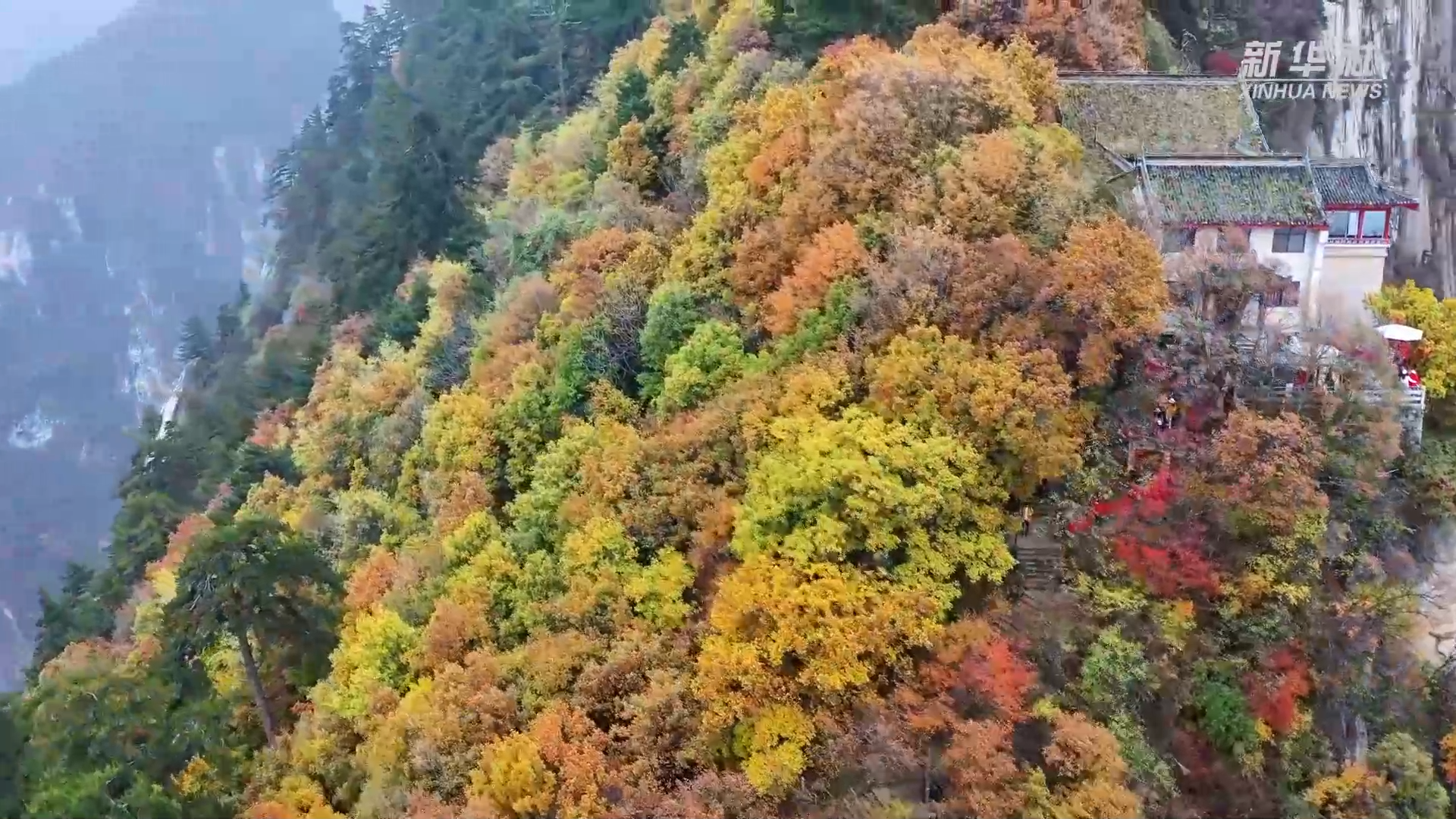 晚秋时节,西岳华山进入了一年中最绚丽的季节。山峦群峰五彩斑斓,金黄、橙红、翠绿的树木相互映衬,构成如诗如画的秋日美景,吸引众多游客纷至沓来。