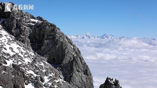 在滇西北迪庆州,石卡雪山迎来降雪。雪后初晴,雪山与草甸、湖泊构成壮丽景观。昆明北部的轿子雪山同期迎来今冬首场降雪,积雪深度约1厘米,形成晨光、云海、冰雪同框美景,正式开启冰雪观赏季。
